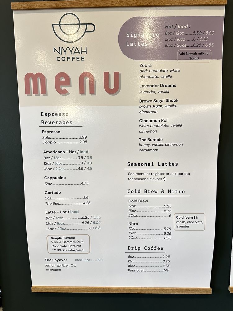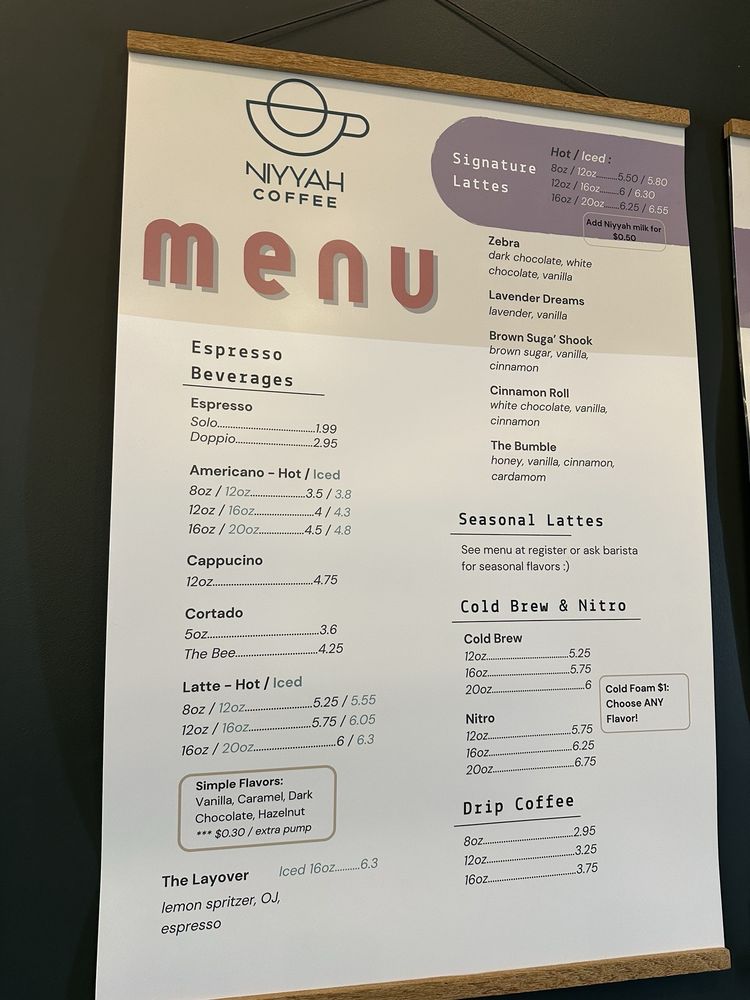 Niyyah Coffee, located at 8100 E 106th St, Fishers, IN, invites you to explore its delightful menu of expertly crafted beverages and desserts. Known for its charming atmosphere within the Hubspoke, this coffee haven has quickly become a favorite among locals.